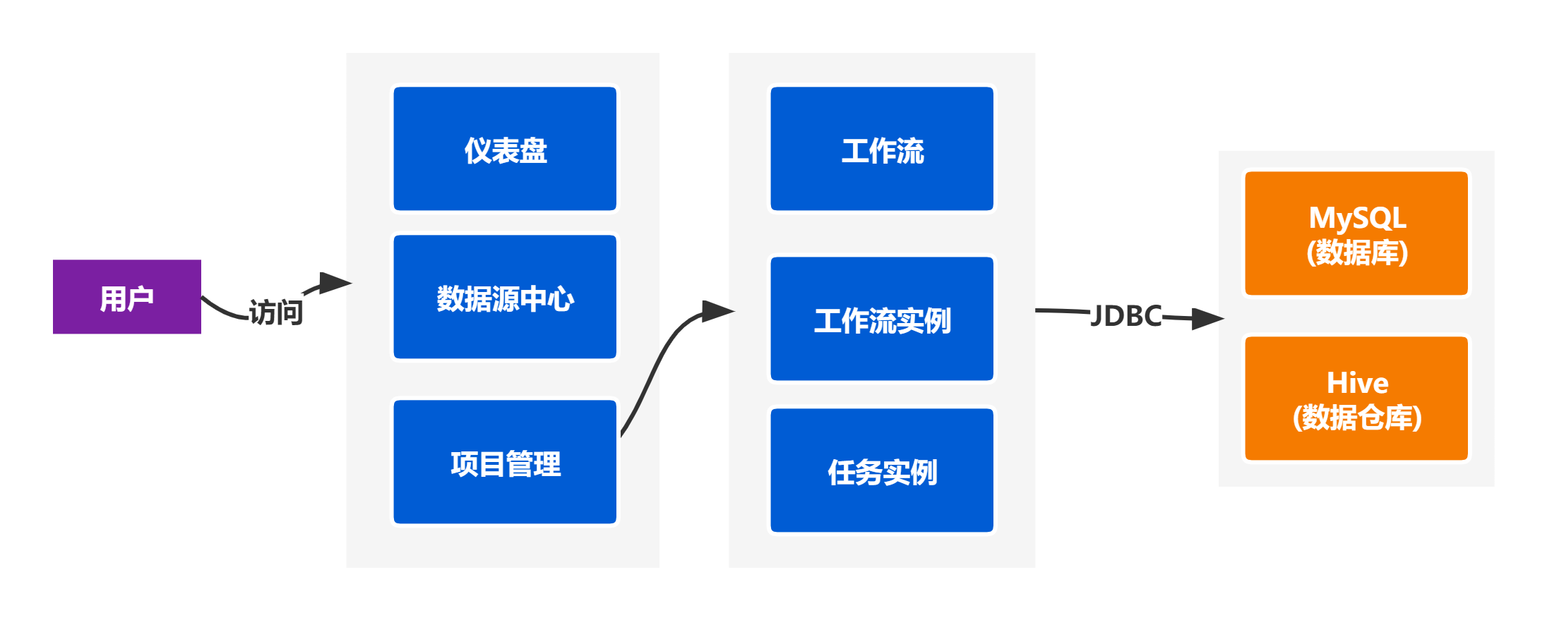 在一個工作流中,數據開發工程師可以只使用MySQL、ORACLE、HIVE等數據倉庫中的一種;可以同時使用MySQL、ORACLE、HIVE等數據倉庫中的幾種,使數據從一種數據倉庫流向另一種數據庫
